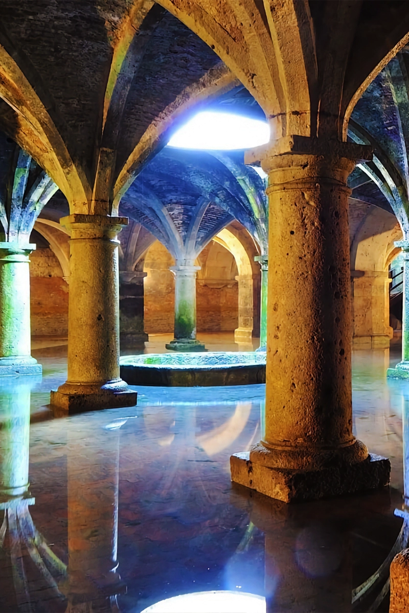 Portuguese Cistern Marvel: Uncover the mesmerizing Portuguese Cistern, an underground water reservoir showcasing remarkable architecture and ambient lighting—a testament to El Jadida’s colonial past.